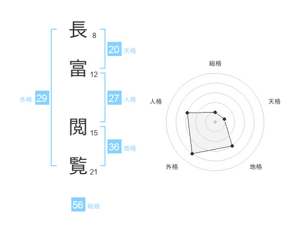 長富 閲覧さんの総格は56画の1点!