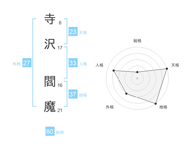 寺沢 閻魔さんの地格は37画の5点!