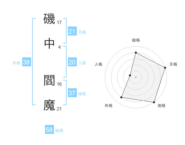 磯中 閻魔さんを姓名の画数から五運を鑑定