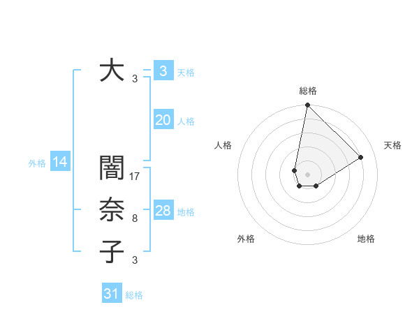 大 闇奈子さんを姓名の画数から五運を鑑定