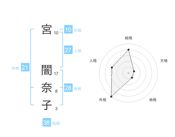 宮 闇奈子さんの総格は38画の4点!