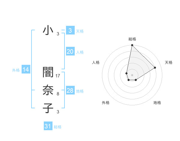 小 闇奈子さんの総格は31画の5点!