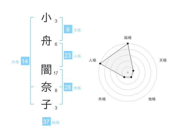 小舟 闇奈子さんを姓名の画数から五運を鑑定
