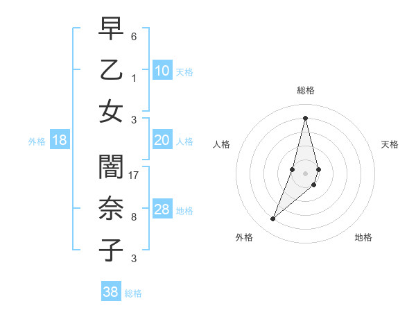 早乙女 闇奈子さんを姓名の画数から五運を鑑定