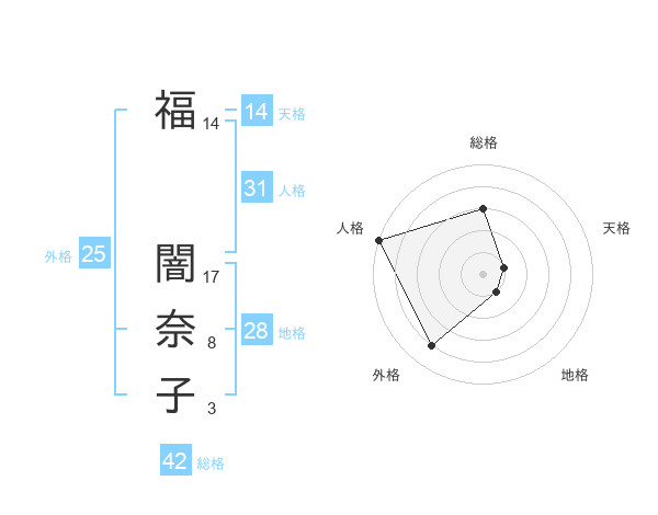福 闇奈子さんの外格は25画の4点!