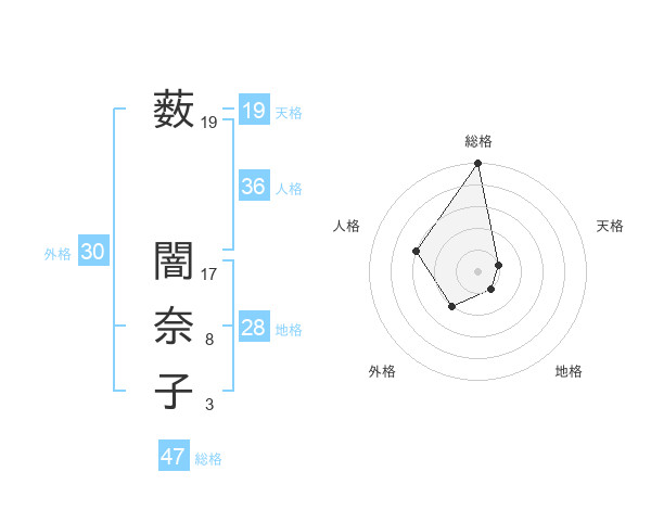 薮 闇奈子さんの総格は47画の5点!