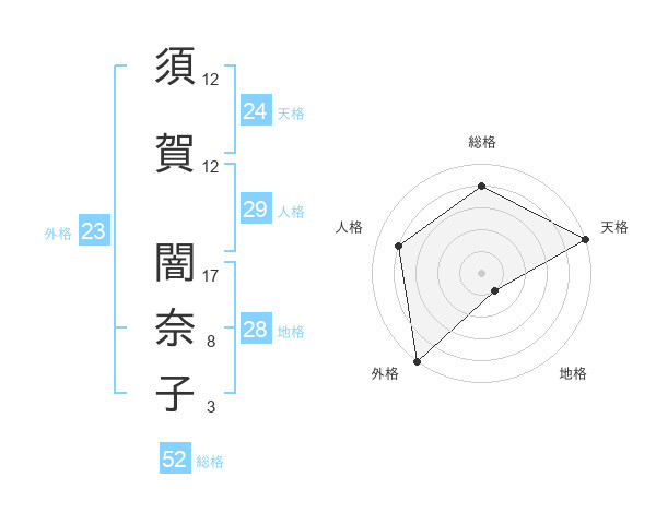須賀 闇奈子さんの外格は23画の5点