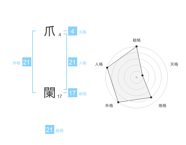 爪 闌さんの総格は21画の5点!
