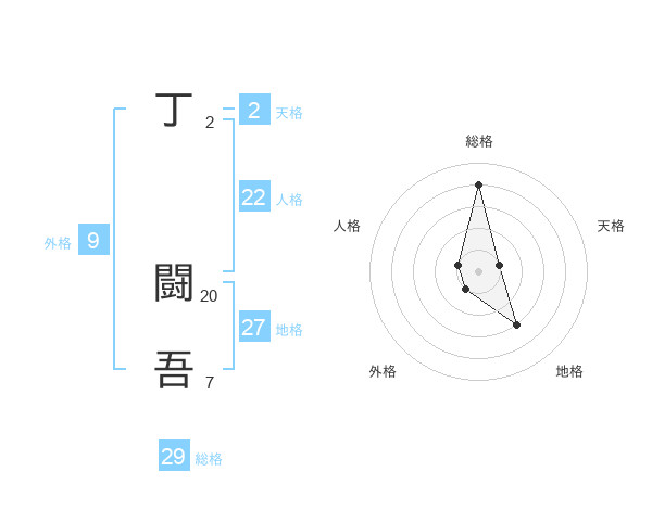 丁 闘吾さんを姓名の画数から五運を鑑定