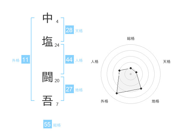中塩 闘吾さんの総格は55画の1点!