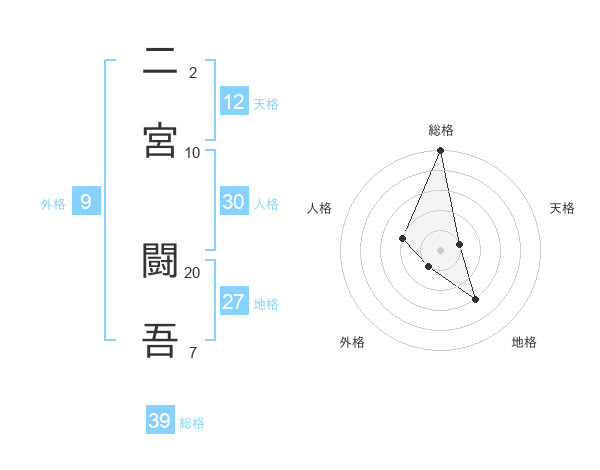 二宮 闘吾さんを姓名の画数から五運を鑑定