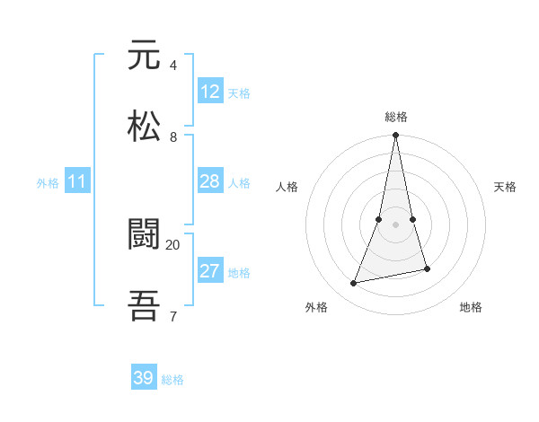 元松 闘吾さんの総格は39画の5点!
