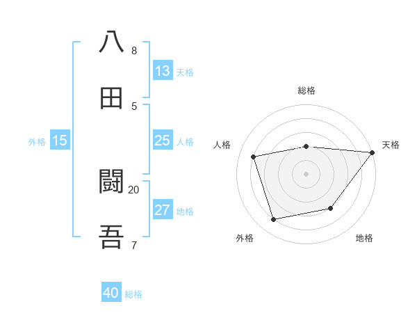 八田 闘吾さんを姓名の画数から五運を鑑定