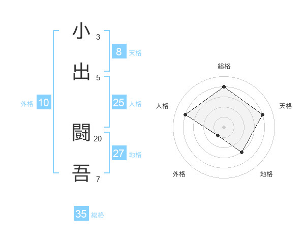 小出 闘吾さんの総格は35画の4点!