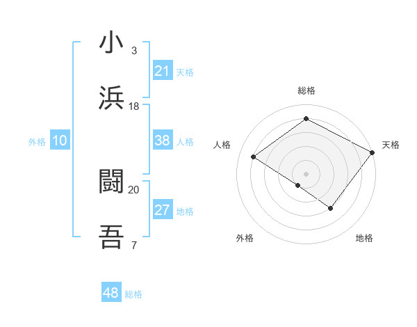小浜 闘吾さんの天格は21画の5点!