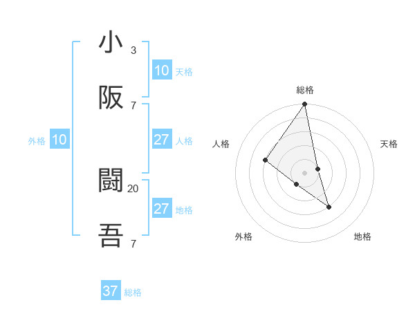 小阪 闘吾さんの総格は37画の5点!