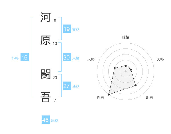 河原 闘吾さんを姓名の画数から五運を鑑定