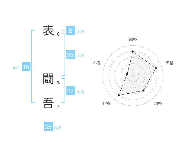 表 闘吾さんの総格は35画の4点!