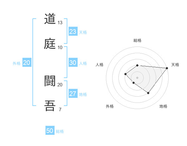 道庭 闘吾さんの天格は23画の5点!