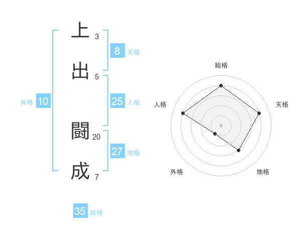 上出 闘成さんの総格は35画の4点!