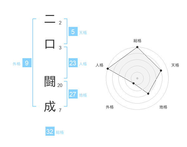 二口 闘成さんの総格は32画の5点!