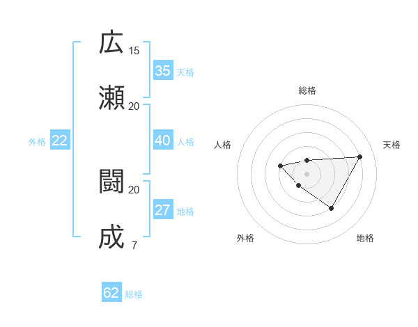 広瀬 闘成さんを姓名の画数から五運を鑑定