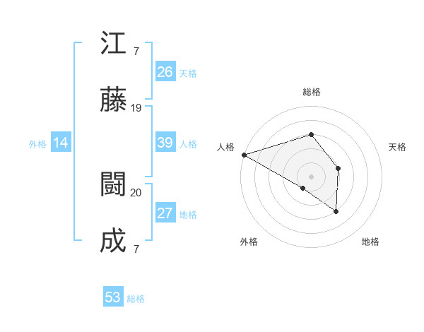 江藤 闘成さんを姓名の画数から五運を鑑定
