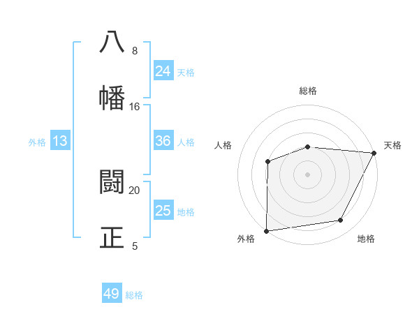 八幡 闘正さんの外格は13画の5点!