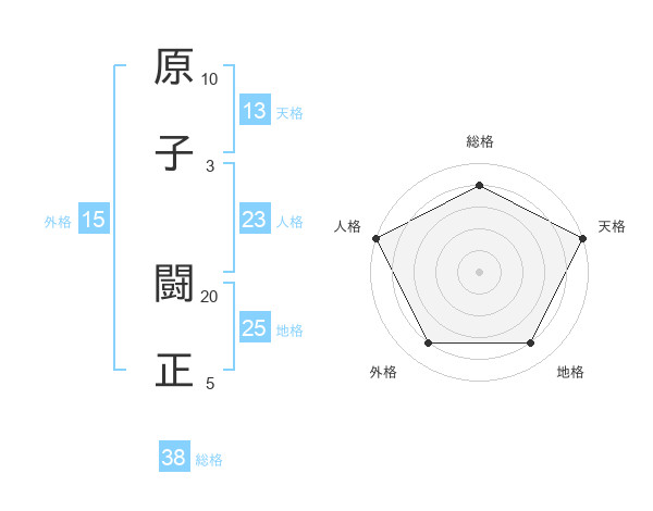 原子 闘正さんの総格は38画の4点!