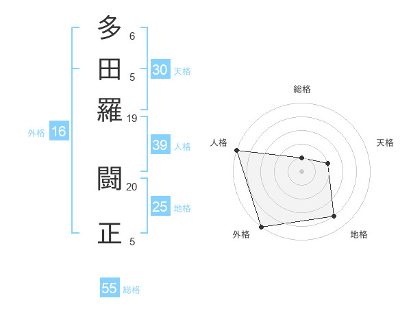 多田羅 闘正さんの総格は55画の1点!