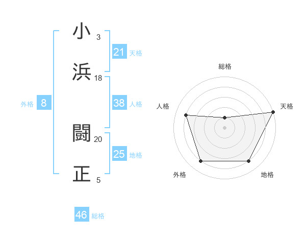 小浜 闘正さんの天格は21画の5点!