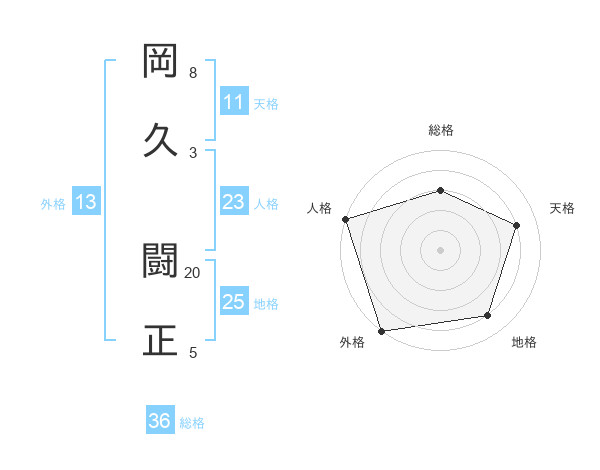 岡久 闘正さんを姓名の画数から五運を鑑定