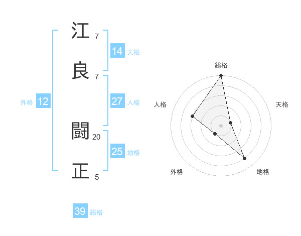 江良 闘正さんの総格は39画の5点!
