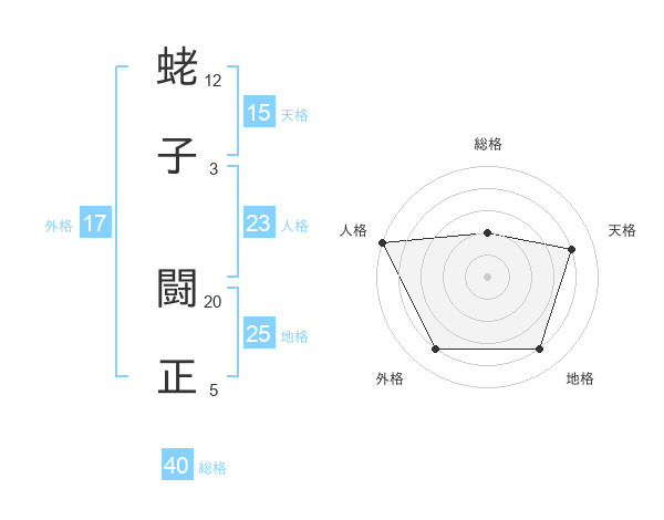 蛯子 闘正さんの総格は40画の2点!