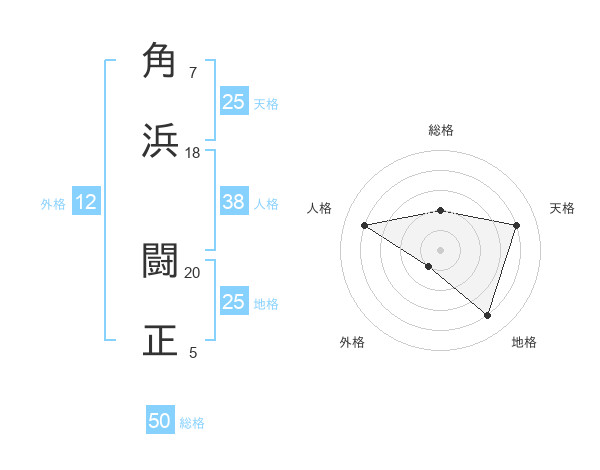 角浜 闘正さんを姓名の画数から五運を鑑定