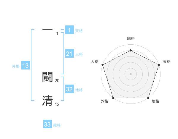 一 闘清さんの総格は33画の4点!