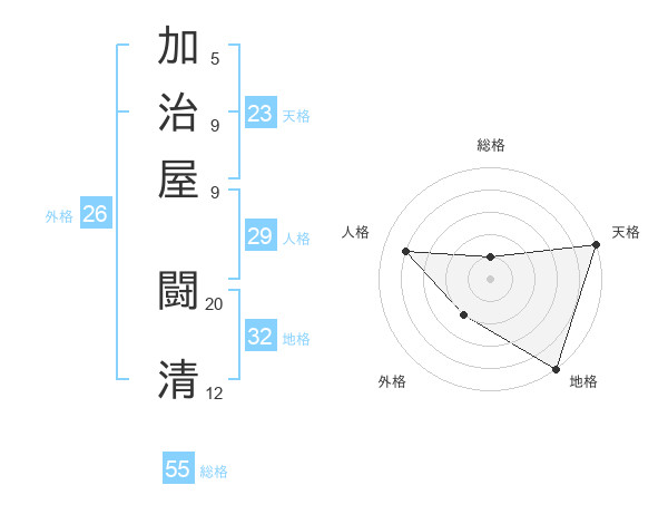 加治屋 闘清さんを姓名の画数から五運を鑑定