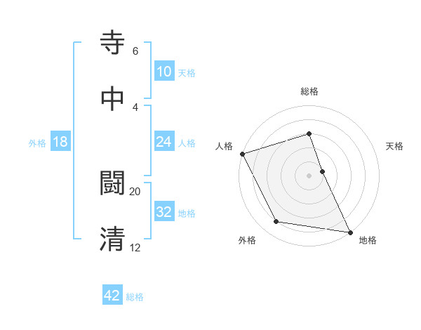寺中 闘清さんを姓名の画数から五運を鑑定