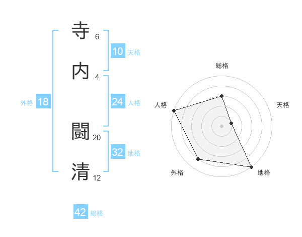 寺内 闘清さんの総格は42画の3点!