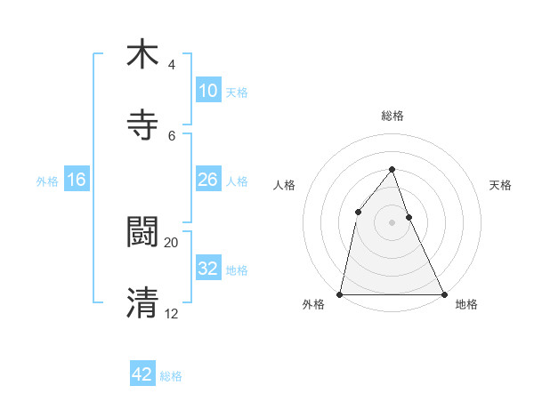 木寺 闘清さんの総格は42画の3点!