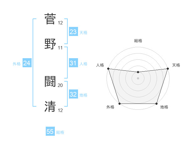 菅野 闘清さんを姓名の画数から五運を鑑定
