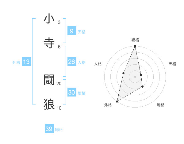 小寺 闘狼さんの総格は39画の5点!
