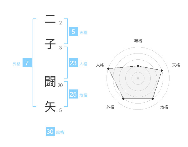 二子 闘矢さんの人格は23画の5点!