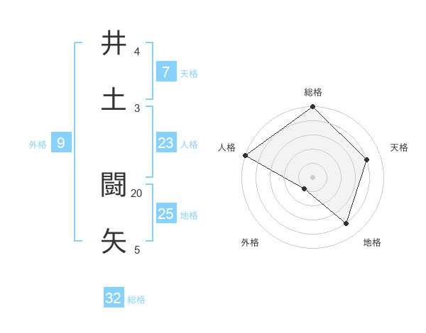 井土 闘矢さんの総格は32画の5点!