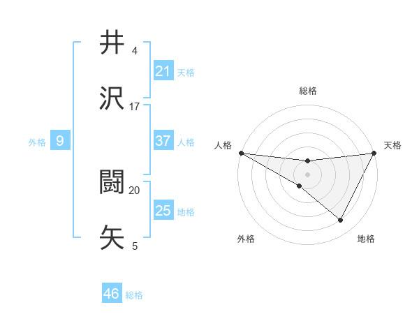 井沢 闘矢さんを姓名の画数から五運を鑑定