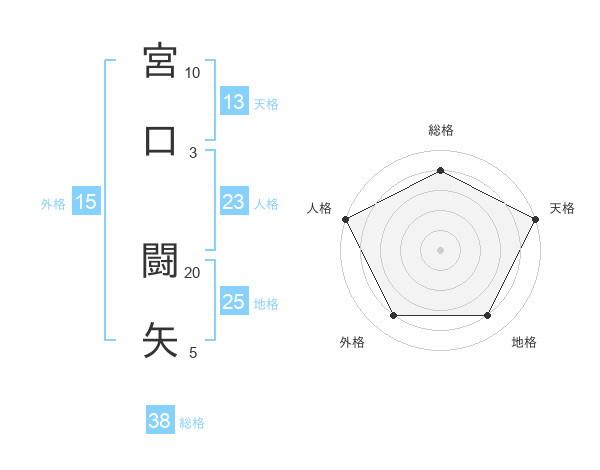 宮口 闘矢さんを姓名の画数から五運を鑑定
