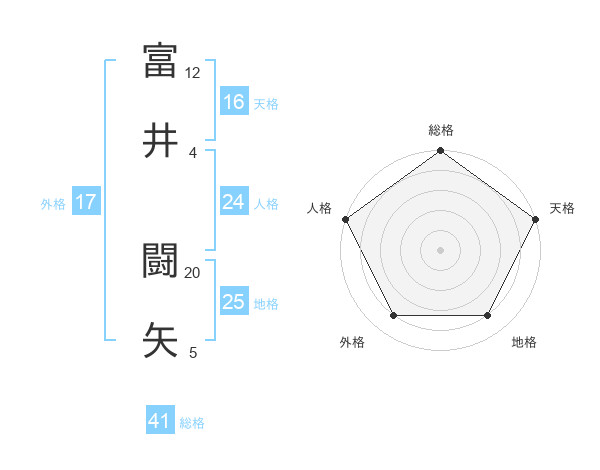 富井 闘矢さんを姓名の画数から五運を鑑定