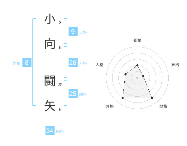 小向 闘矢さんの総格は34画の2点!