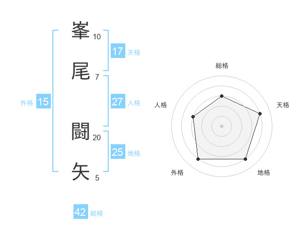 峯尾 闘矢さんの天格は17画の4点!