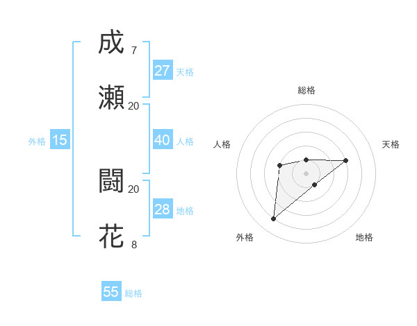 成瀬 闘花さんを姓名の画数から五運を鑑定